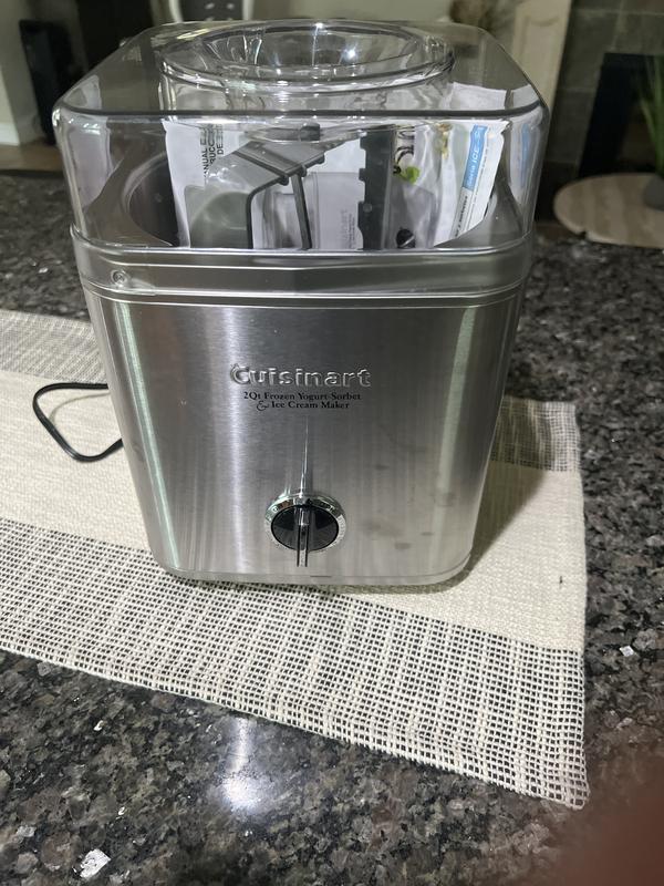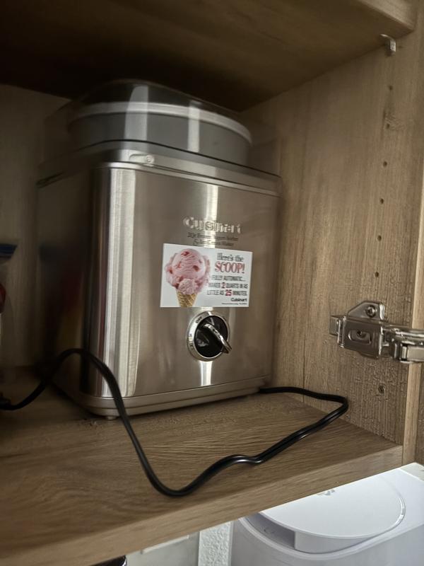 When they're screaming for ice cream, give them what they want with this sleek and compact ice cream maker. They won't have to wait long - 25 minutes is all it takes for the heavy-duty motor to mix up creamy frozen desserts or drinks. The double-insulated freezer bowl holds up to 2 quarts and a large ingredient spout provide plenty of room to add your favorite mix-ins. Housed in shining brushed stainless steel, this appliance looks great on any countertop.