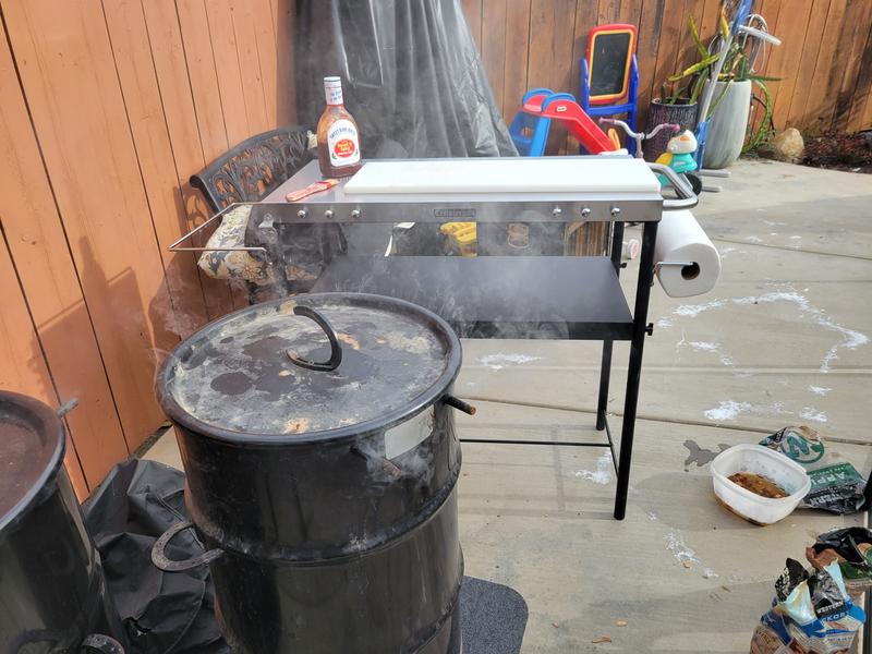 What a useful tool to have. I do a lot of bbqing, smoking and grilling so the added prep space is awesome to have. It keeps you out of the kitchen so you don’t have to do a lot of running back and forth. It’s a good size, there is plenty of work space as well as a shelf underneath. And it is waist high which makes it comfortable to work at. Between the trash bag holder, paper towel holder, tool holders and bottle opener, it really has everything you need in a prep cart. The only thing I didn’t like is that the tool holders are plastic knobs. Besides that everything is awesome. The stainless steal top on the black cart looks really nice. It has a handle and 2 wheels which makes it easy to move, and the 2 legs without wheels helps it stay in place. It was easy to build, it came with clear instructions so it wasn’t confusing. And the bottom shelf height is adjustable, so it really can hold whatever you need. I’m really glad I have this extra work space.