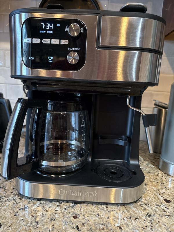 Love the Cuisinart barista bar. Makes a great programmed pot, pods, and great cappuccinos. Frother is excellent. And dispenses hot water for tea. Easy to use, and I only need one coffeemaker on my counter now.