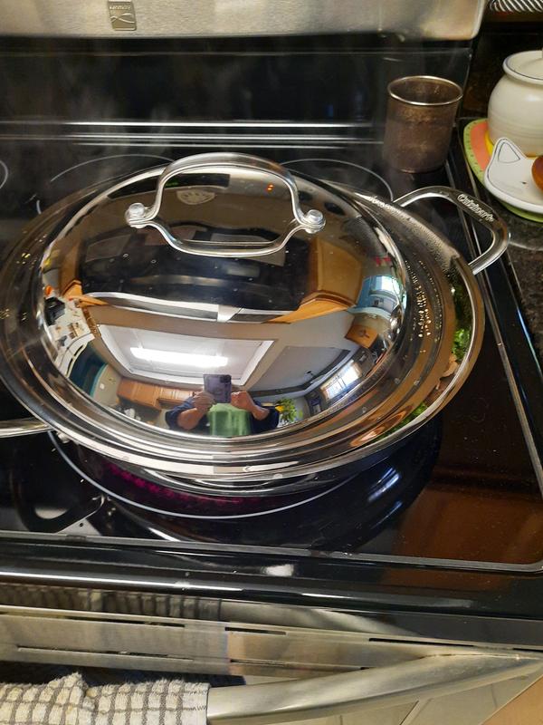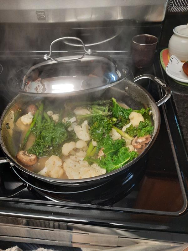 I was looking for a good quality 12" pan. This is lighter than I expected from Cuisinart, so-so heat distribution and odd domed lid. If I had seen this in person I would have passed. Oh well.