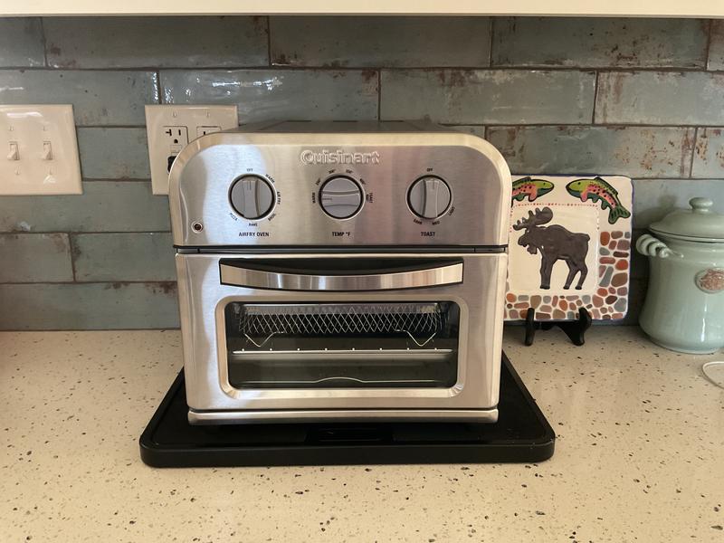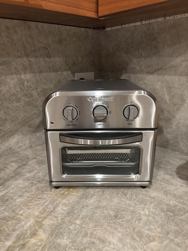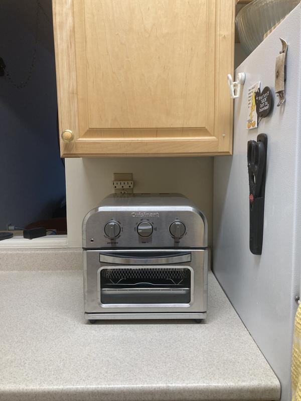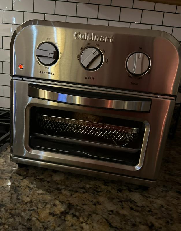 My old Cuisinart toaster oven had stopped working a couple years ago, and I was hesitant to replace it because of the price and bulkiness of the product as I am now in a smaller space. I had mentioned it to a friend of mine that air fryers make me nervous because there is so much plastic involved and they actually recommended this exact air fryer toaster oven as they have it themselves. Price and the compact size are a huge plus. This thing cooks from frozen in like eight minutes For fries and chicken nuggets, and A lot of other food. I’ve even baked cookies in it. The only downside is that the fryer basket is a little harder to keep clean because it’s a lot of small cracks and crevices but if you keep up with it and just use a spray bottle of water to wipe it down in between uses, that makes it a lot easier to keep clean. I used a bamboo bristle dish brush to clean the wire basket and that worked really well. Highly recommend!!