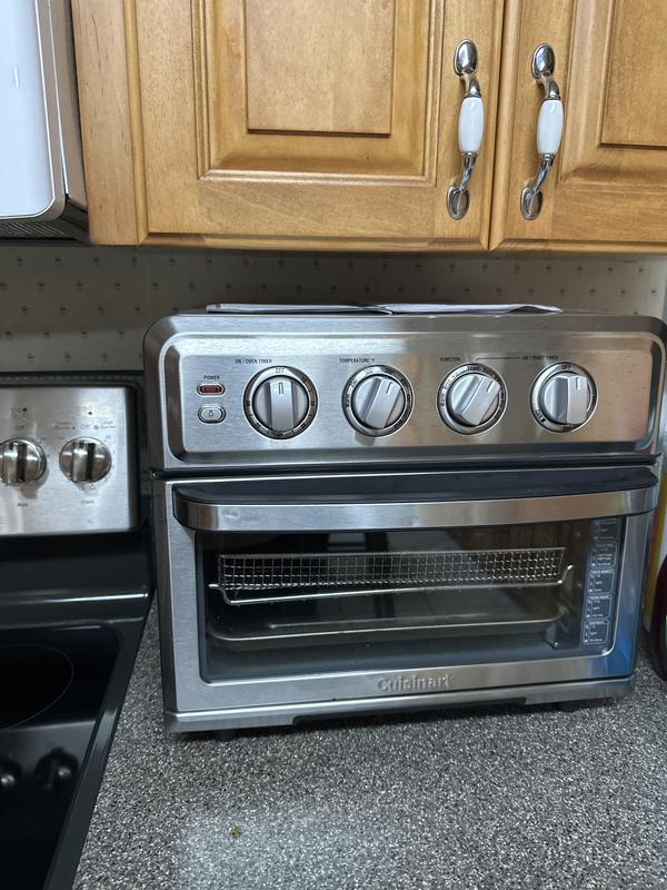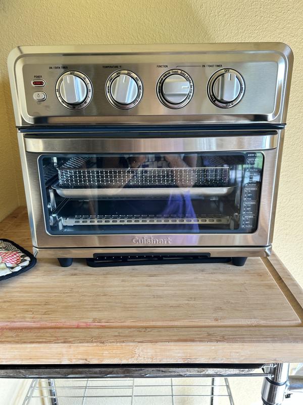 I had been hesitant about giving up some kitchen real estate for another gadget. I kept going back and forth between several brands. The day it came, I was excited and happy that it matched all the other stuff like the oven and refrigerator, as if I was trying to do that. It tripped a fuse immediately, and I was happy I had saved all the packing gear as I was regretting not only the return hassle, but also a poor purchase. The instructions mentioned that might happen, and I checked the fuse box and easily brought the circuit back online. It has been perfect ever since. I can cook chicken thighs with my special marinade in about 15 minutes @ 400. Roast pumpkin seeds easily enough, and air fry my tofu nuggets into crispy morsels. It was easy to clean was a bonus to. I've had it for a month now, and don't regret the purchase. The biggest drawback is that the different settings (bake, broil ) are hard to see due to the glare of the stainless steel behind these settings. If this is my biggest complaint, then Cuisinart did well.