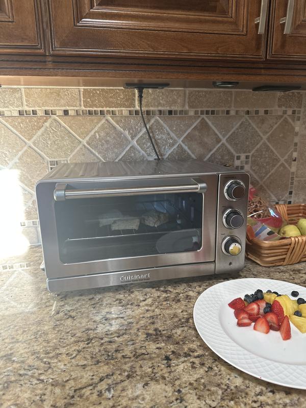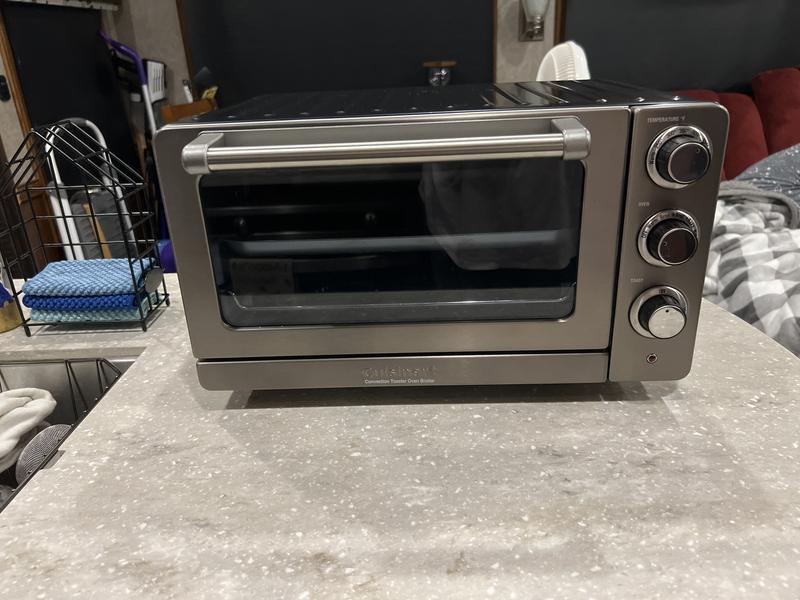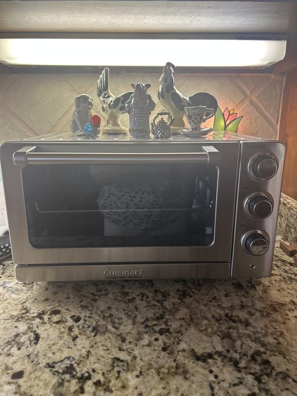 This is a replacement for another Cuisinart toaster oven that we had for many years. It works as advertised. But it is smaller than our other one. We didn't pick up on that when we ordered it as we did that online. Works fine, but too small.....