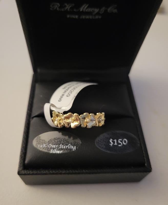 This ring was pretty, but all the pearls fell out within a few days of wearing it. I went to the Macy's store and they would not give me a refund.