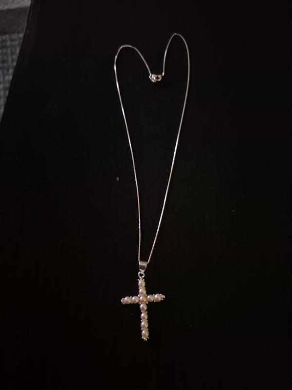 It didn’t meet my expectations. The pearls are of mediocre quality. Additionally, the cross pendant is not straight. This misalignment is quite noticeable.