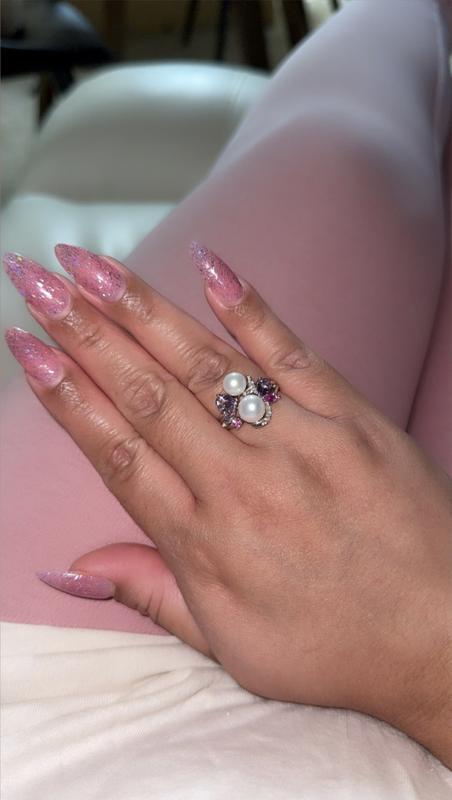 Cultured Freshwater Pearl (6-1/2 & 7-1/2mm) & Multi-Gemstone (1-3/8 ct. t.w.) Cluster Ring in Sterling Silver