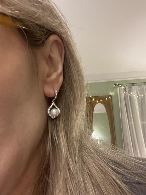 Cultured Freshwater Pearl (7mm) & Lab Grown White Sapphire (7/8 ct. t.w.) Drop Earrings in Sterling Silver