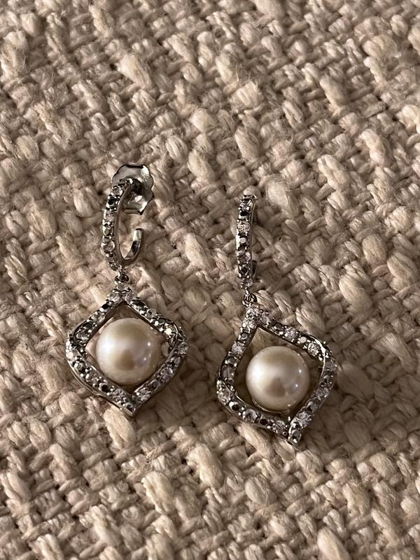 These look really great in person, better than I expected. The white sapphires sparkle and the little hoop fits really well on the earlobe with the tear drop. Love them, they are a keeper and a timeless, classic piece.