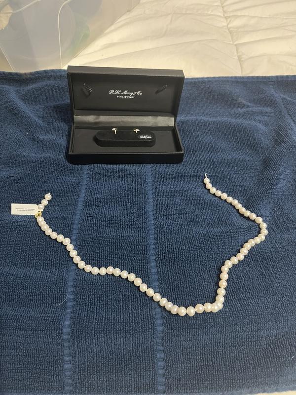 I am trying to be polite here, but nearly 1/3 of the pearls look fake, and are cultured pearls supposed to have a seam? I know they are basically lab grown, but they just don't look right. The earrings look higher quality than the necklace. Am returning with the broken studs (broken IN the box!) and will treat myself to a higher quality strand of pearls next year. Macy's has lost its credibility with me.