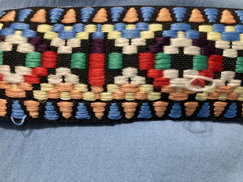 Love the look. The decorative embroidered trim pulls on everything. It was not treated on the reverse side, before sewn to garment.