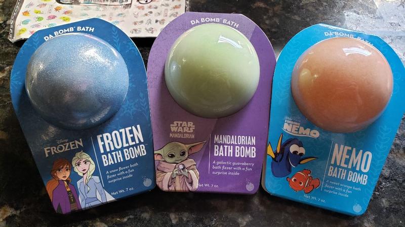 The Frozen bathbomb was probably my favorite! It smelled so good, turned the water this really pretty blue & the shimmer was my favorite part! Plus the little surprise was so cute! Didn't really make much foam, but thats okay.