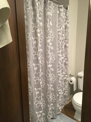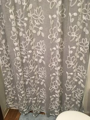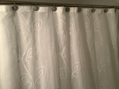 This white shower curtain is very elegant and well made and ads a touch of class to our bathroom.