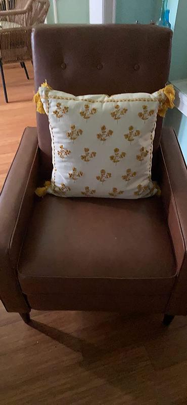 The Ezra MCM pushback recliner is (almost) perfect for my home. Love the straight lines, button tufted high back, firm but springy deep seat, leg reach, and stability. It takes a bit of oomph to recline but so worth the effort, instant bliss. No problem with assembly, had it finished by myself within 15 minutes and definitely doesn't look like a boxed build it yourself recliner. No wiggle, wobble, or creaks. My only issue is the upholstery FABRIC-there is nothing "leather" about it! It reminds me of a canvas drop cloth or maybe duck cloth, definitely has a woven finish not smooth like leather, AND it collects every cat hair/lint/fuzz in the area..a nightmare! Not something I would choose if I had seen it in person, hard pass sadly. BUT the comfort and relaxation is worth me getting a removable washable cover for it. If you are a pet friendly or active home this beautiful cream color may not be a good fit for you unless you want to spend more time trying to keep it clean rather than relaxing in it ....highly recommend the actual recliner, just not this cream "LeatherSoft" upholstery.