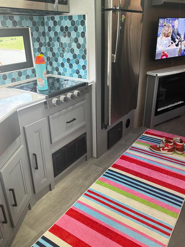 This rug is so cheerful. The colors are vibrant. The rug is soft underfoot. Love that it’s washable. Makes me smile every time I peek in to my kitchen.