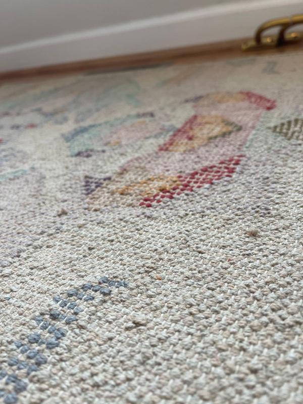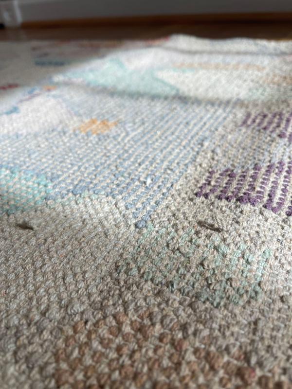 I absolutely love this rug. I got it for my office and am very happy with how it turned out. The colors and pattern are very fun, but understated which is exactly what I was going for (Also I’m obsessed with Laura Park so this rug is just a dream). The only negative people should know... I have only had the rug for 3 days and there are pulls and frays absolutely everywhere and this is before it’s ever been vacuumed. There is even a full on knot that I’m terrified to trim because I don’t want to mess it up. Because of this I am a little concerned that this rug won’t stand the test of time which would be a shame because this is a dream rug for me and also wasn’t cheap.