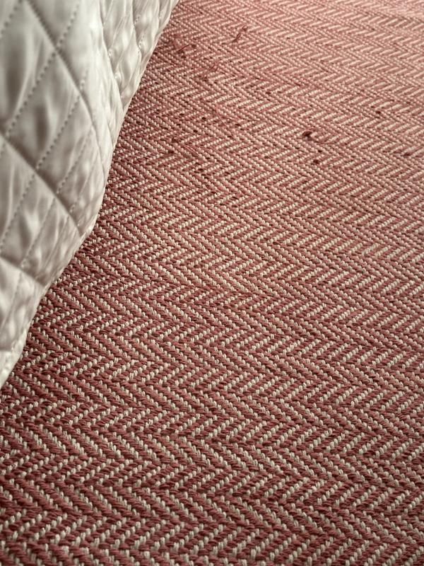 I should start by saying that I have several Dash & Albert rugs throughout my home--I don't use anything else! And I've been so happy with them! I loved this rug when it arrived. It's very thin, but I stuck a pad under it which did the trick. However, it's less than two years old and has faded horribly. It stopped being a vibrant coral long ago, and I'm left with dull pink that shows every little stain. It also faded more in places that get the most foot traffic. At this price, I would've expected much higher quality and durability. Lesson learned.