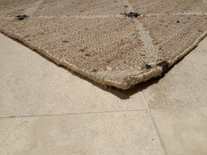 Exactly as advertised. I put it in my entryway and it’s holding up great so far. The jute isn’t too rough either which is nice, but I’d still keep away from putting it in a living room because it isn’t a plush cozy rug (if that’s what you’re looking for). Great price, beautiful pattern.