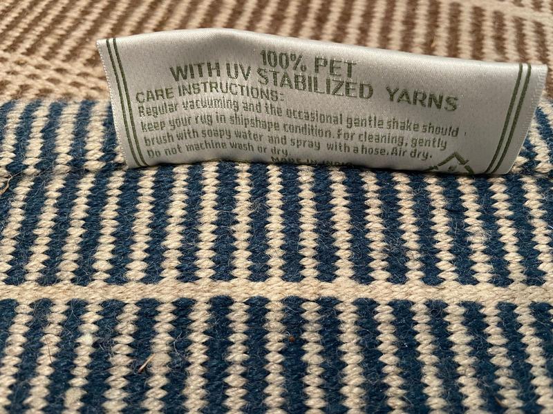 Love the look and feel of this rug. It is very soft and I can't believe that this rug can be used outside, too. Bought this rug in 2 different colors.