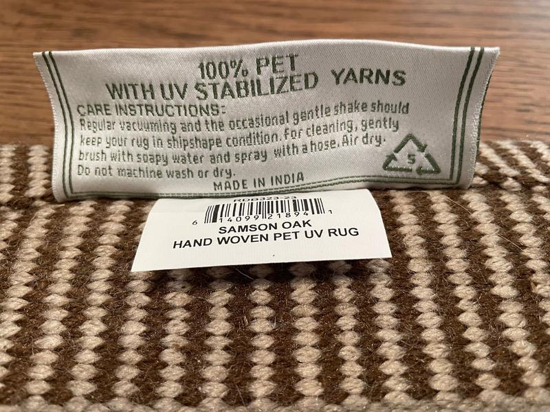 I didn't buy this rug to use outdoors but the fact it is washable and so durable is an extra plus. The rug looks like a wool rug not synthetic in any way! The color is exactly as shown on line.