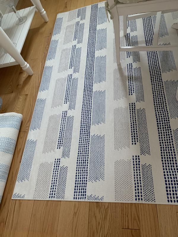 I like the variation in color – lovely design.The rug material is less substantial than two other Annie Selke rugs I bought earlier this season. Those were marked Annie Selke, and this one was Kit Kemp /Annie Selke. Not sure if that is the reason that it is different, or if the rugs have changed in general.