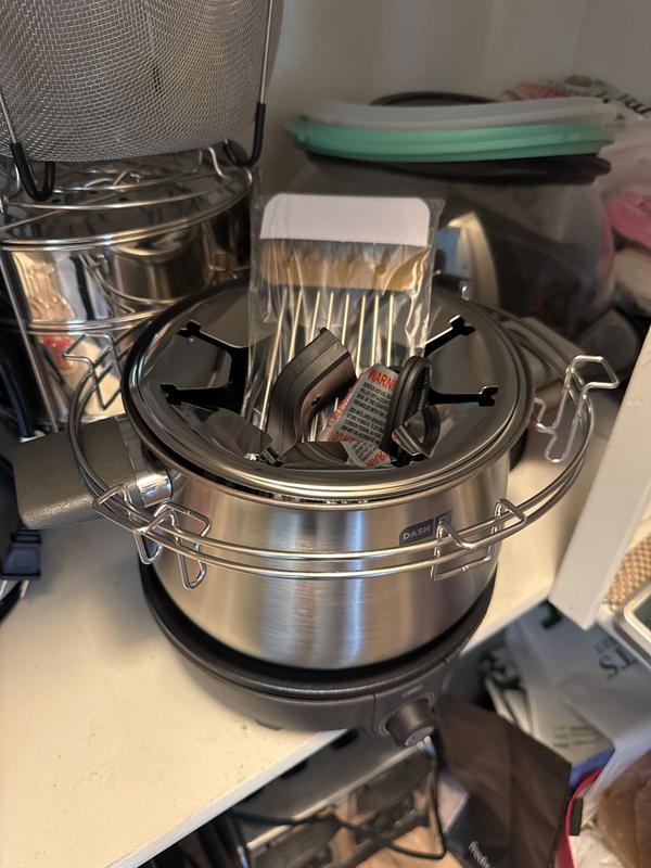 This is great! We love it! We use it to melt cheese like The Melting pot. And melt chocolate. It’s awesome! I don’t know if there are different styles but the picture shows little buckets on the outside that hold food. Mine did not come with that.