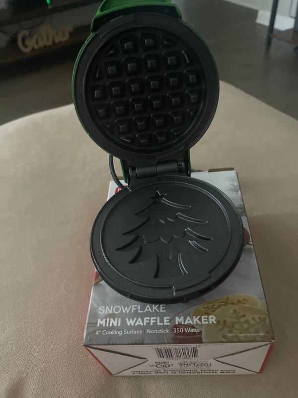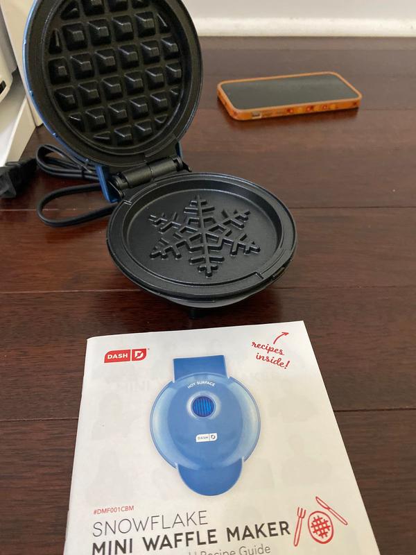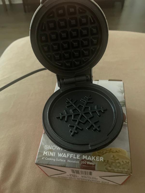 Makes individual snowflake imprinted waffles that brings a smile to family members. We use several different dash mini makers to keep up with demand for three to five people at breakfast (or brunch, lunch ,dinner) Snowflake pattern is impressed into the center of the waffle which cooks evenly. It also allows you to spread cream cheese into the cooked waffle to emphasize the white snowflake. The outer rim of this waffle is also thicker.These mini waffle makers lack a timer or heat adjustment so you have to develop your preference. I use a separate timer. Some like a three minute bake time, some prefer five minutes. Leaving them longer has not resulted in any burnt waffles, so heat seems well regulated. Different pattern Dash Mini Waffle makers seem to all work consistently the same. Enjoy
