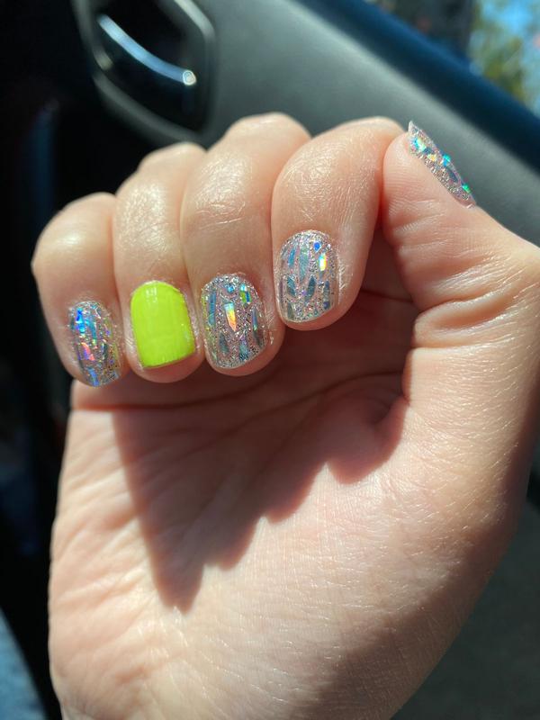 This set looks great as an accent or all on its own. It looks great on short nails as you can wear them upside down so the glitter covers the whole nail. They last almost 2 weeks for me.