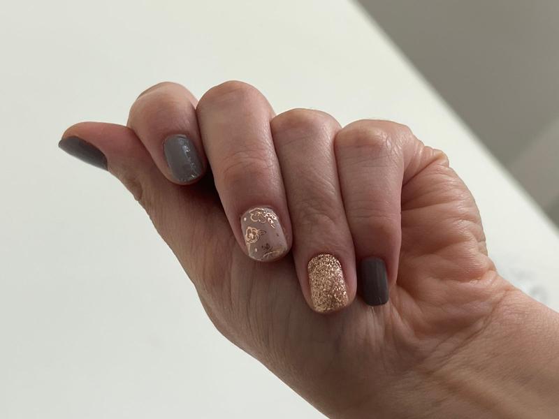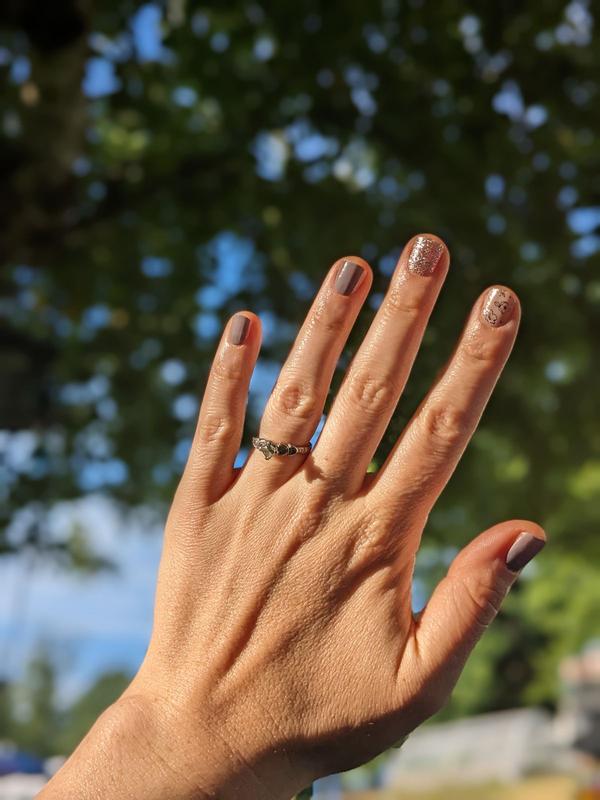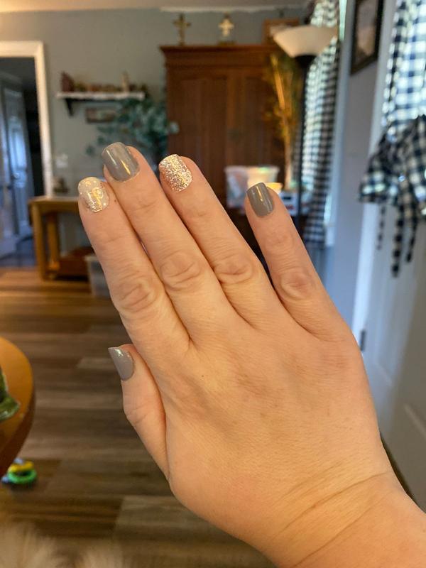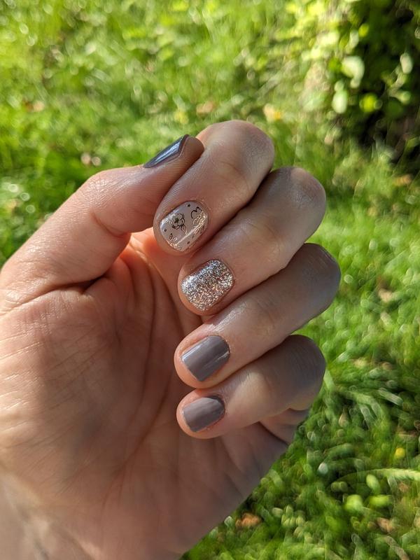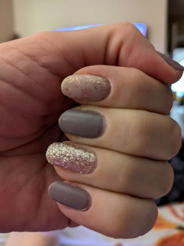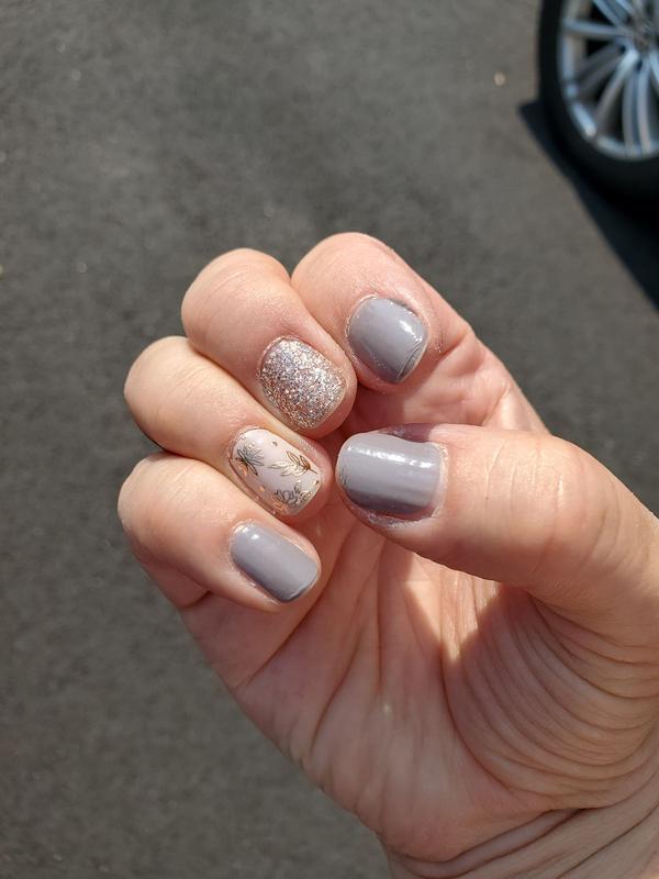 I love this color and the added bonus of the glitter and floral notes. This set is a nice subtle set. It goes with anything and is just beautiful!