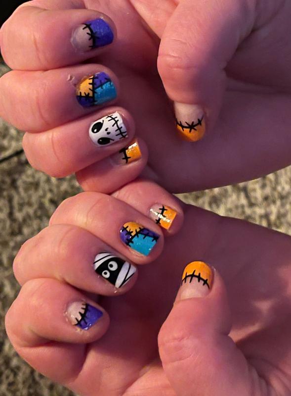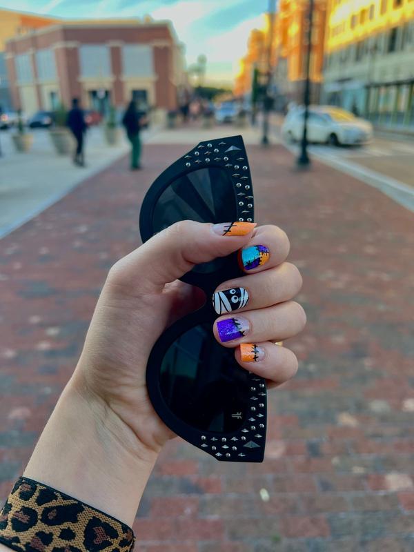 I received multiple compliments on this Halloween set. I thought they were a little busy once they were on and wished I had longer nails at the time of application to show more of the design. Despite this - definitely a fun set to try!
