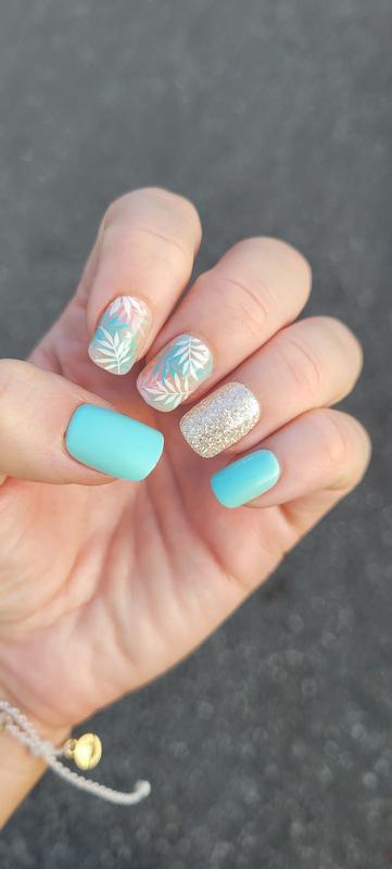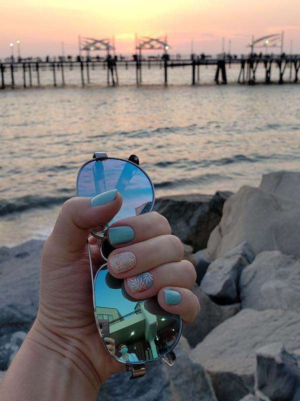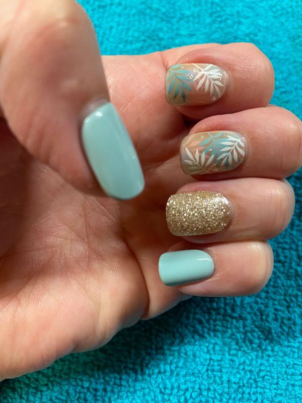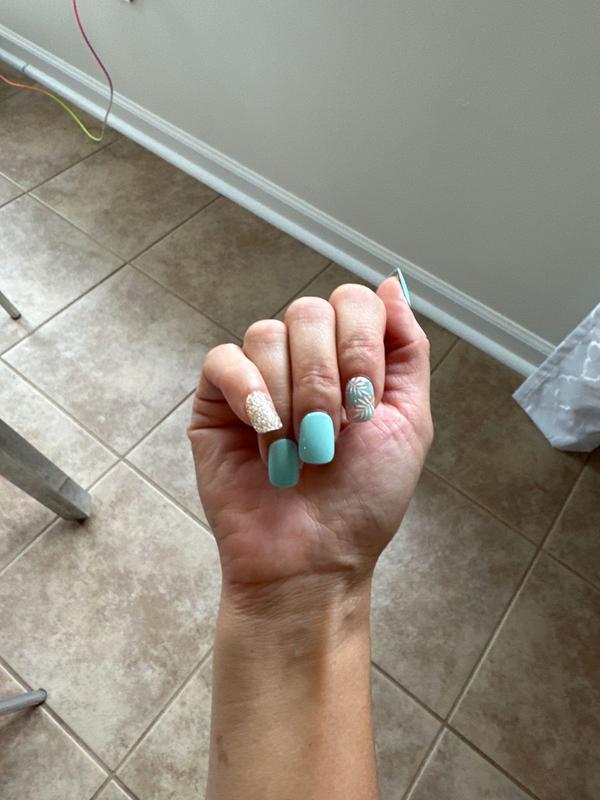 Picture isn’t great as this is over a week of wear. I did add glue so they would last my whole cruise. My only complaint is that even the largest thumb size was almost too small for my nails. And if I used all of the proper sizes on each nail they would all be the same color. So the accent nails weren’t big enough for me, but I tried to make it work. I guess I’m the minority as it’s a common issue with any brand. I did file the edges to be a little less square.