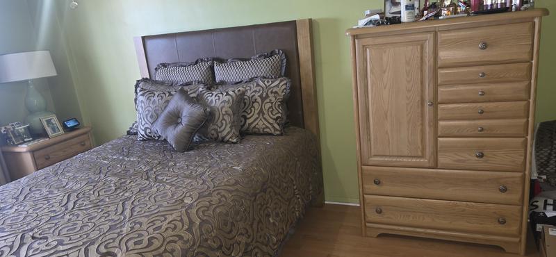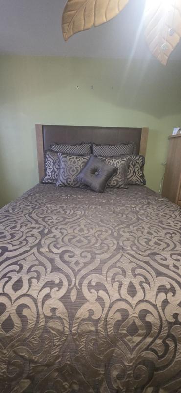 I hesitated buying this bed, I don't know why. This bed is a beauty. Nice clean lines, takes up minimal space. It is a tall boy,standing at 5ft tall. The leather is a beautiful toffee color brown, the stitching on it is flawless. If they would've made the dresser and the chester in nice style, I would've bought the whole family. If you only need a leather bed, Look No More.