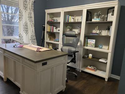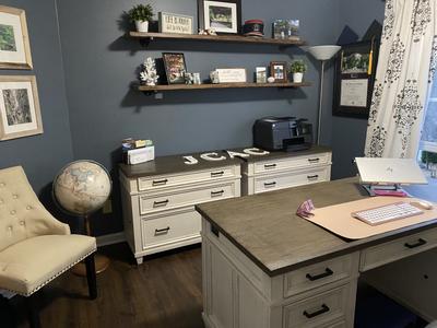 I am so happy to have found the Dawnwood desk! I was looking for a desk that wouldn't clash with my two-tone bookcases, and this one couldn't be more perfect! You would think that they were sold as a set. The desk is beautiful and functional and was delivered in great condition. Macy's made a special effort to come in the morning because the weather was going to get very bad at noon and later. The desk is a little higher than I would have liked, but I am only 5' 1" tall.