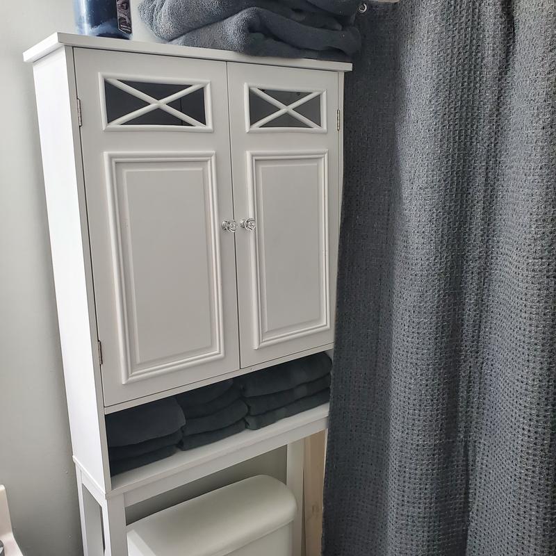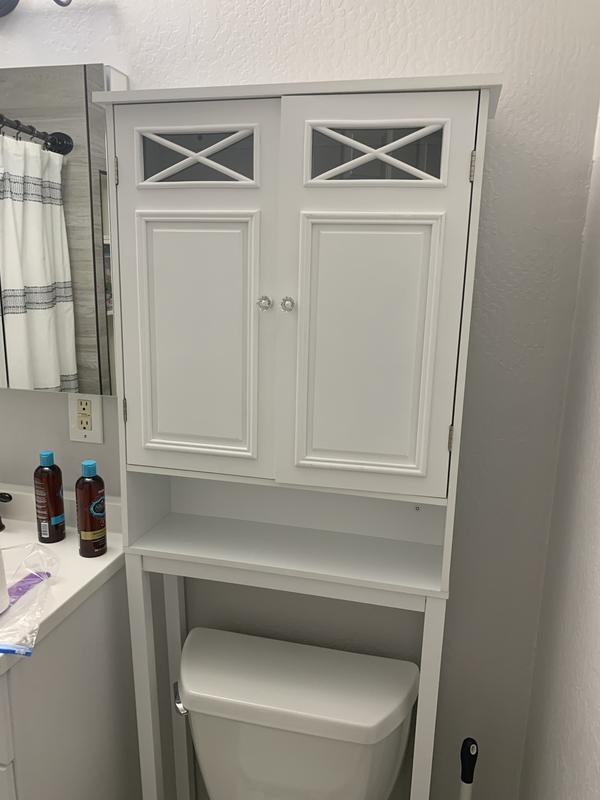 I love the closed cabinets on this Elegant Home Fashions Dawson Wooden Space Saver as everything near the toilet can become unsanitary. The gem knobs and cross molding on the doors give it character. This was pretty easy to put together in about 20-30 minutes. My only complaint is I had a hard time lining up the pieces for the backing. It seems pretty solid and long lasting.