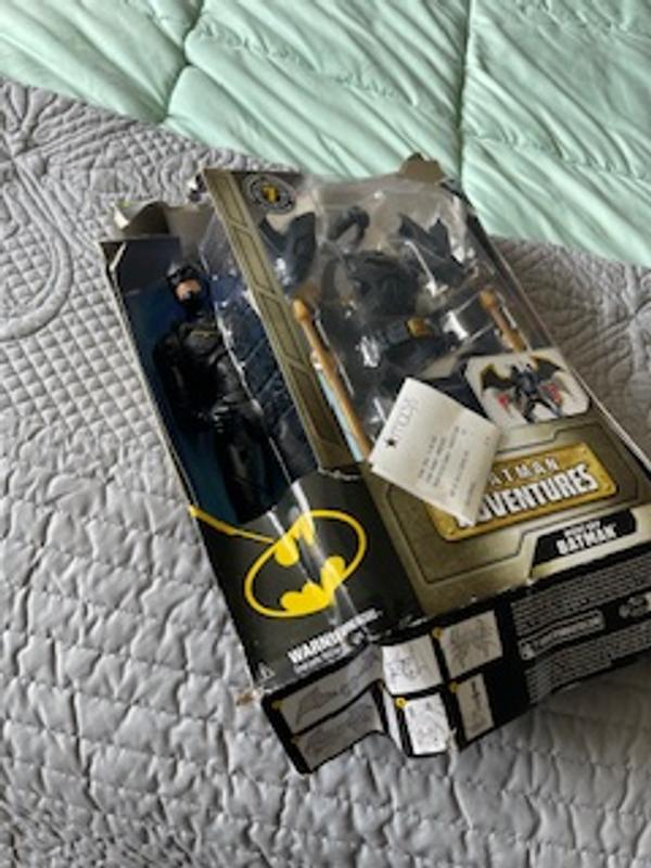 The action figure is pretty big. It’s like twice the size of the Batman toys I used to play with 20 years ago. The gear is large. My box was damaged.