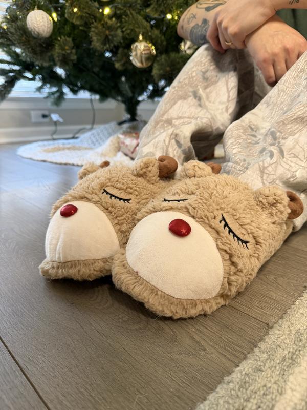 These critter slippers are incredibly soft and comfortable — the cozy lining feels amazing the moment you slip them on. The memory foam provides great cushioning, and the closed-back design makes them feel more secure than a traditional slide slipper. I’ve been wearing these around the house and for quick outdoor moments, and the sole holds up really well. They’re warm, lightweight, and easy to move around in, which makes them perfect for long days at home. The design is playful and festive, making them a great holiday slipper or gift. I would definitely buy these again and recommend them for anyone looking for something cozy, fun, and functional.