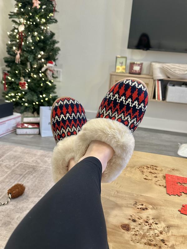 DearfoamsWomen's Hannah Festive Knit Clog House Shoe Slipper