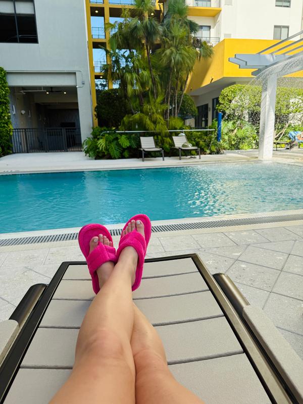 My favorite slippers ever! The pink color is stunning and they are the most cozy shoes. I love that you can wash them in the washer! I’ve been wearing them from the moment I wake up to the moment I go to sleep, and that includes wearing them to the beach and when I run errands!