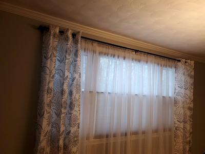 This is a gorgeous, sturdy curtain rod set. I bought the longer one and shorter one for two windows(72"-144") and the shorter one (36"-72") for windows in my dining room. They are telescoping so that the rods appear uniform where no curtain is hanging. very attractive brackets and finials with just enough bronzing on the end caps to be interesting but not over bearing. Love them!