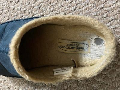 :Not as comfortable or classy as my last slippers which were leather. I selected my foot size but these are, in my opinion, larger. If they stretch, they will be too large. Being fabric uppers, I will try washing to see if they shrink a bit.