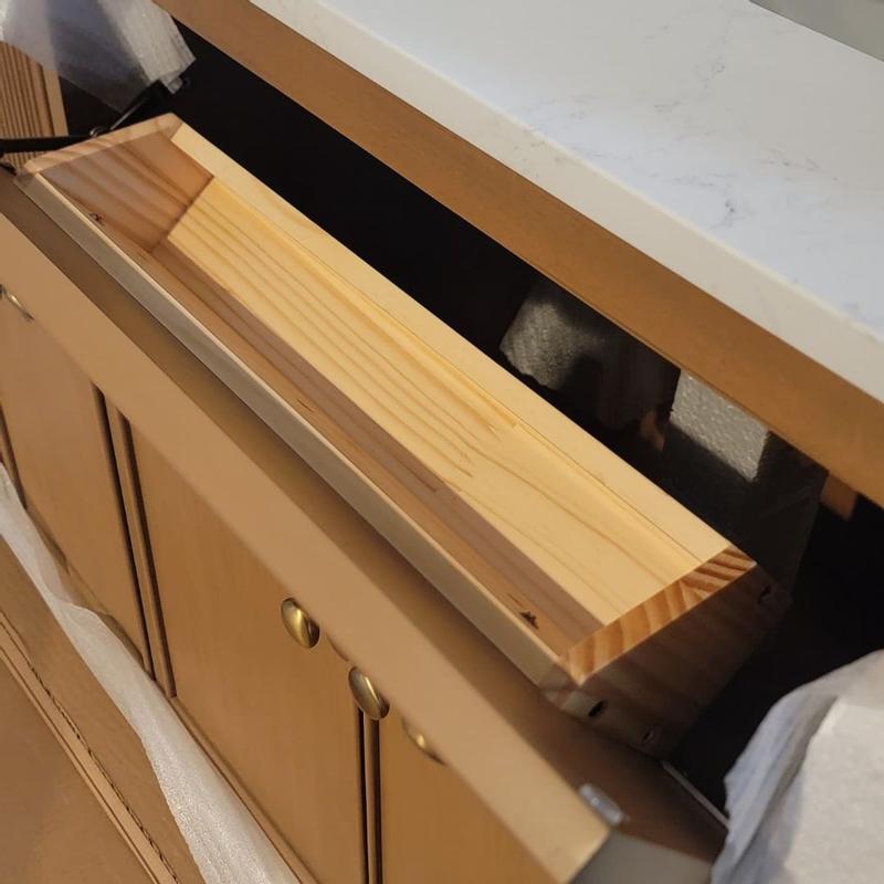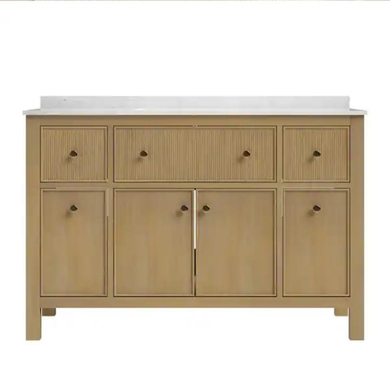 The Deer Valley DV-1BV0272NW/ DV-1BV0273NW pre-assembled bathroom vanities offer a sleek, natural wood finish that brings a warm, modern touch to any bathroom. With soft-closing drawers and a built-in splash guard, these vanities combine style and functionality. Available in both 48” and 60” options, they are well-built, easy to install, and provide ample storage space, making them a great addition to any home.