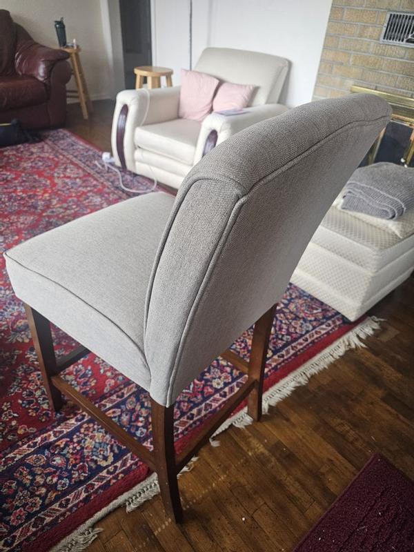 Quite an easy chair to put together. The instructions took all of maybe 30 minutes to unpack the box and get it completely assembled, which isn’t bad. I came with everything you need besides a screwdriver, which was a little odd to me how it had different screws for the bottom foot things. But luckily, I had a screwdriver on hand. The chair is very comfortable. It sits at a great bar height. It’s honestly going to work great as a chair for my room to add a little bit of extra sitting area and it’s well up in upholstered well. The color is also very nice and the material is soft but sturdy.