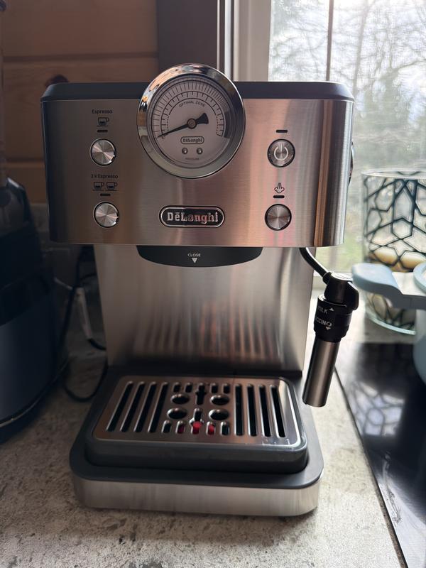 Best practical, affordable and aesthetically pleasing machine. As a daily espresso drinks customer (no more) I am now saving time and money having this machine at home. It comes with all the features a serious coffee drinker would need. My coffee is good now, every single time! No line, no waiting. Love it!