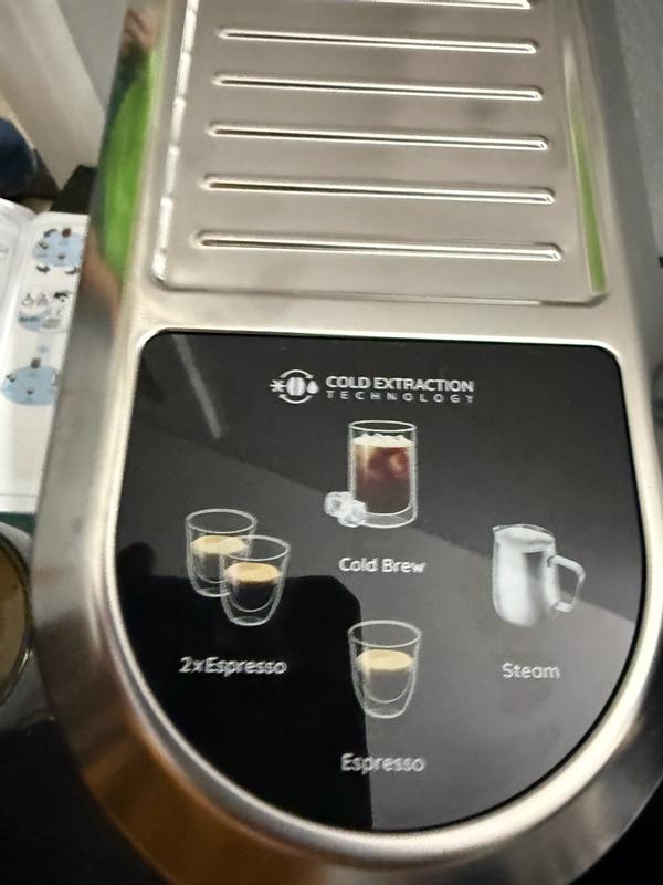 Nice sleek design. Set up proved to be difficult. Instructions are almost non existent. My machine needed descaled out of the box and I had to google it. Cold brew brew is very weak. Regular shot is good strength. Doesn’t steam for very long. Took a while to heat up.