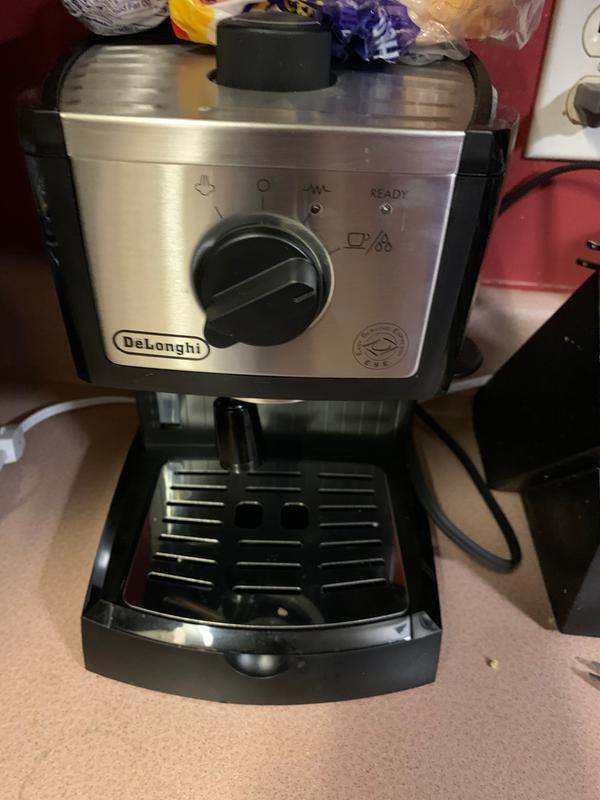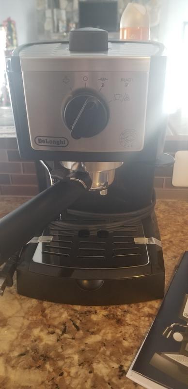 I am really really happy with the DeLonghi EC155M 15 Bar Espresso & Cappuccino Machine. If you love a variety of coffee/espresso drinks but don't love the coffeehouse prices and lines, you'll flip for this DeLonghi! I have used a different brand espresso machine, so I wasn't a complete newbie. But, I've only ever used espresso pods so I was relieved to know I can still use pods, but I can also use ground espresso beans when I get more experience. The machine is pretty compact and really doesn't take up much room on the kitchen counter. It's black and stainless steel, so it looks sleek and complements a variety of decor styles. The water heats up FAST! You have the option of making one or two cups of espresso at a time, which works out great for me and my husband in the morning! It brews cup after cup with no lag time in-between. I already had espresso cups, but if you don't, you need to get some. Regular sized mugs will be too big to fit under the dispenser. Also, just be aware that this machine is a bit louder than regular coffee machines, just like at the coffeehouse. I love that the instruction manual is very easy to follow and makes using this machine much more simple than it seems. And after a few uses, you'll be making absolutely delicious, aromatic espresso drinks! I am hooked! This is definitely a great machine for anyone new to brewing espressos and cappuccinos at home!