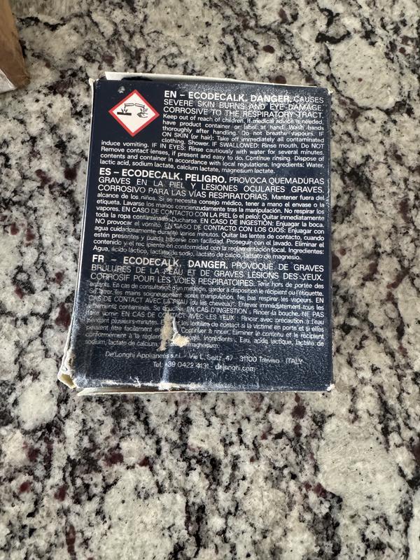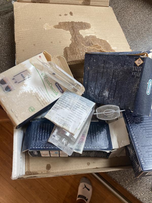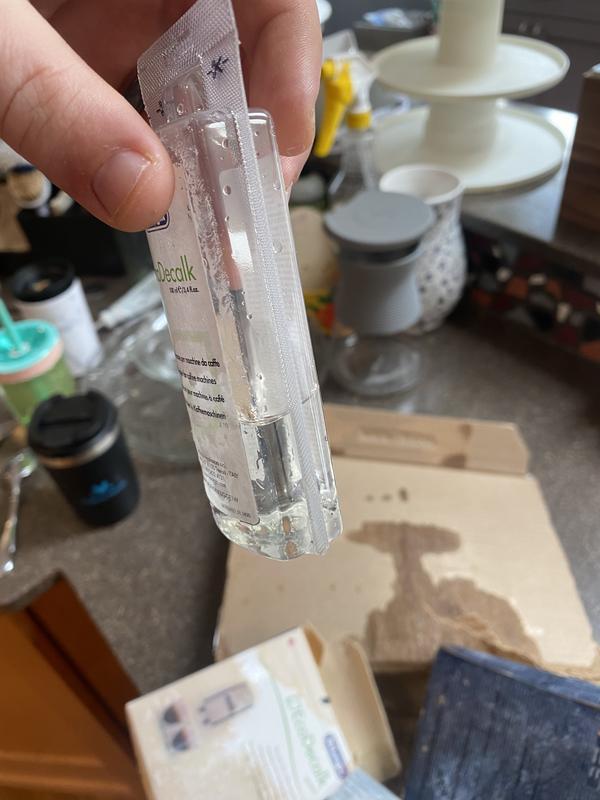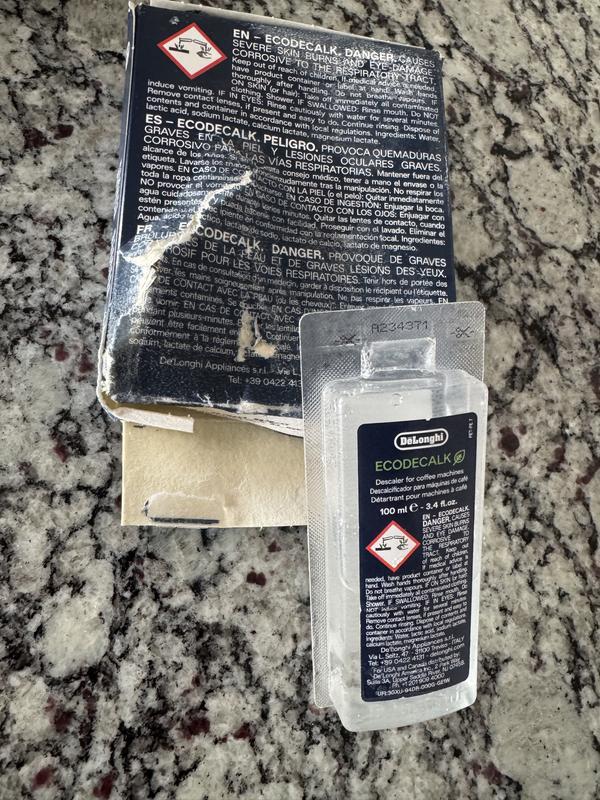 Descaled had to be used twice to clear machine, but I’d had it for 2years without descaling. Parcel arrived with package damaged from a leak. The internal -lactic bottle had been squashed.