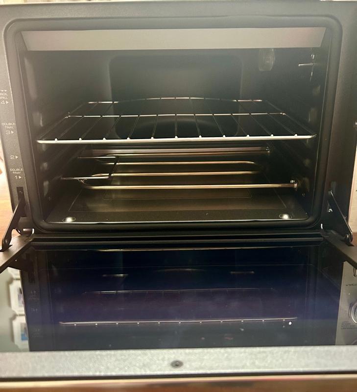 works but door handle sticks out too far,doesn't allow enough depth when pulling out rack or tray, also, it has started to close up when opened trying to remove food,be careful not to get burned,