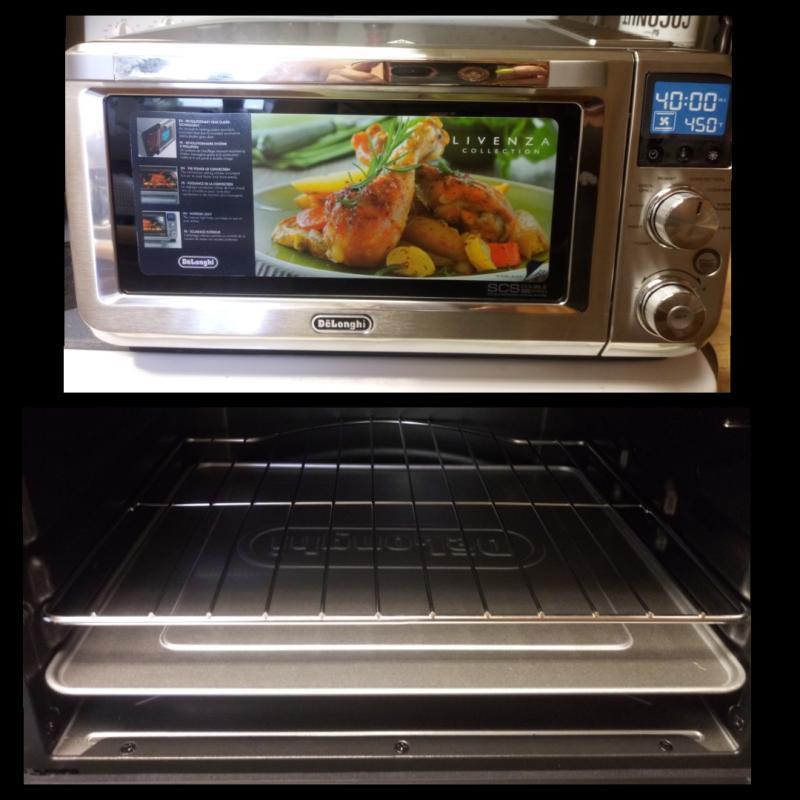 Got this oven to replace a previous DeLonghi oven. I loved my old one and love this one too. I had read reviews that said the door didn’t stay down when opening, but my door stays down to put food in or take it out. My only criticism if I am being very picky is the handle is shiny and shows hand prints easily. No problem to wipe them off though. Great purchase and I highly recommend this oven!