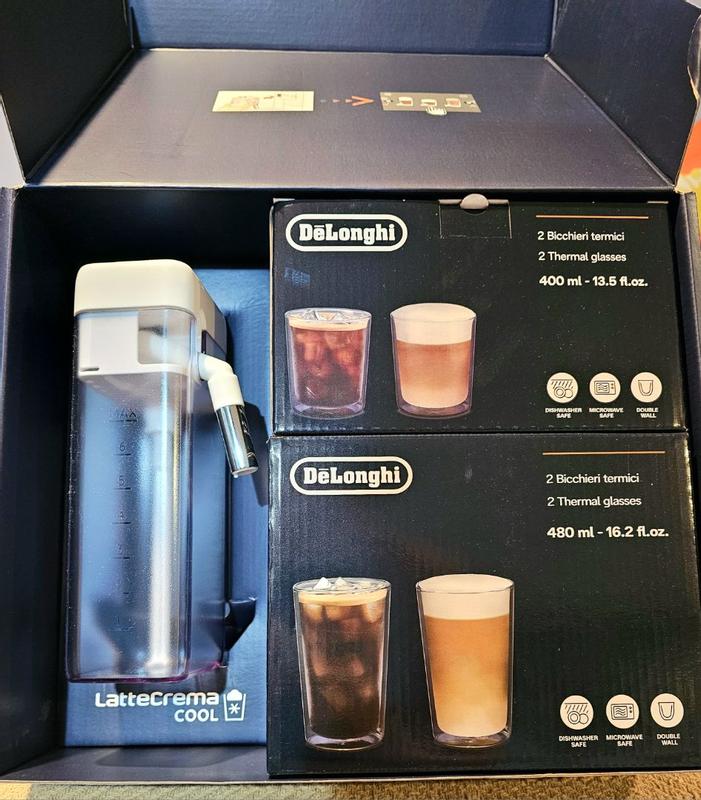 I recently received the Rivelia LatteCrema Cool Upgrade Set, and I couldn’t be happier! It’s the perfect addition to my De’Longhi Rivelia Fully Automatic Espresso Machine I had received my espresso machine a few months ago. The set makes it so easy to prepare iced cappuccinos, lattes, and macchiatos—everything comes out smooth, refreshing, and delicious. The quality of the accessories is excellent, and they truly elevate the coffee experience at home. I especially appreciate how convenient it is to switch between hot and iced drinks with the LatteCrema system.