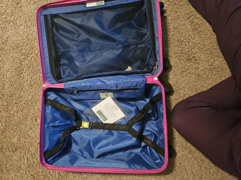 I am so impressed with this carry on! It’s an absolute gorgeous green color and has a design on the front! It’s very sturdy and also lightweight. Has a lock attached for extra security!
