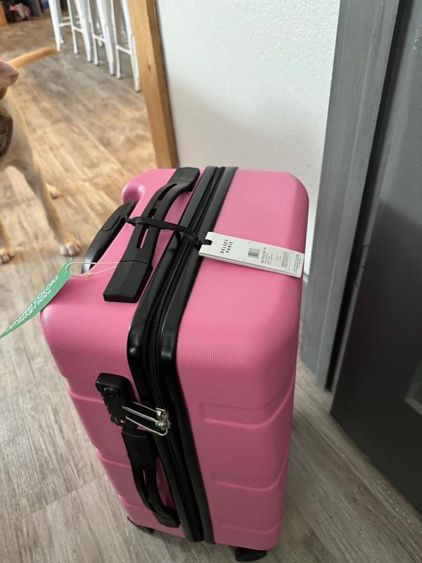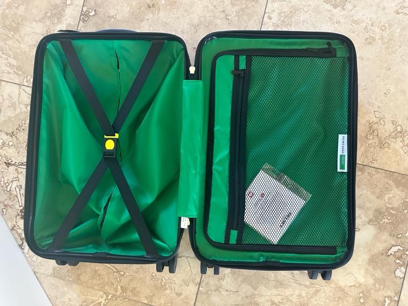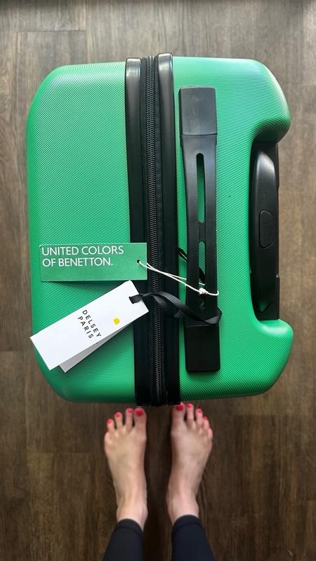 This carry-on was soooooo perfect and easy to use for a nonstop 5 hour flight and my first cruise. It is a functional 19” that handled the weight of my stuff plus my partner’s tech bag on top with no loss of maneuverability. It easily switched from alongside vertical positions to tilted behind the back position with one hand. I used it as a carry-on so as not to worry about the weight of my purse or potential achey shoulders. The handle locked in place and did not collapse or crunch my fingers, and the wheels were quiet and smooth. It fit in the overhead without issue. This is co-branded Delsey with United Colors of Bendleton and is smart-looking. The interior is a vibrant emerald, and has very functional compartments that keep everything in place when you open it. Thankfully I did not have to open my carry-on at security, but on previous trips I was mortified when stuff fell out! No worries with this piece. The Bendleton colors and design are also a stand-out: the handle mechanism runs inside the case and rolled into underwear and socks on either side and up the middle created a nice flat surface for my watercolor paper which did not get damaged in the slightest. For color, I picked a powder light blue to match my all-weather north face jacket (layering is a must for Alaska in June). The light color was perfect and distinctive. I did not see anyone else with coordinating outerwear and luggage color. Final bonus? It was easy for my travel partner to spot. I felt VERY stylish, international, and sophisticated in this look.